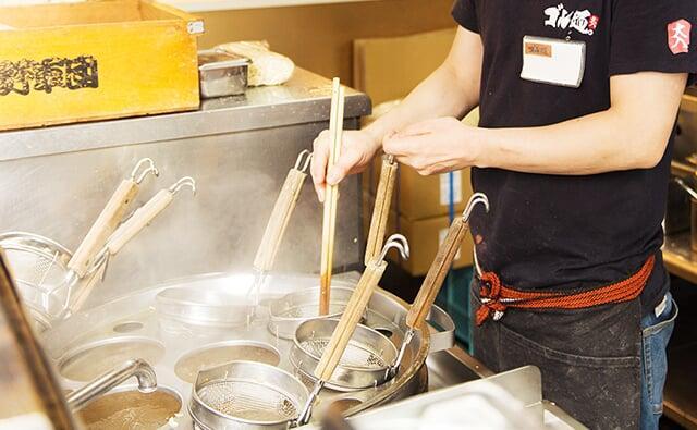 ラーメン作りの全て、店舗運営に必要なノウハウとオペレーション技術を研修でしっかり学ぶことが出来ます。研修員が責任を持って会員様をサポートし、1人前へと導きます!